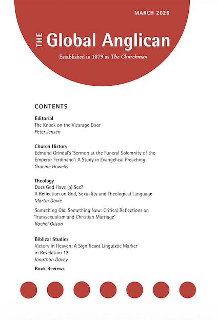 Read the full content listing for The Global Anglican Vol 140/1. The Global Anglican is an international journal of theology for the Anglican church. This listing is for a single issue. You can also subscribe to the journal here.